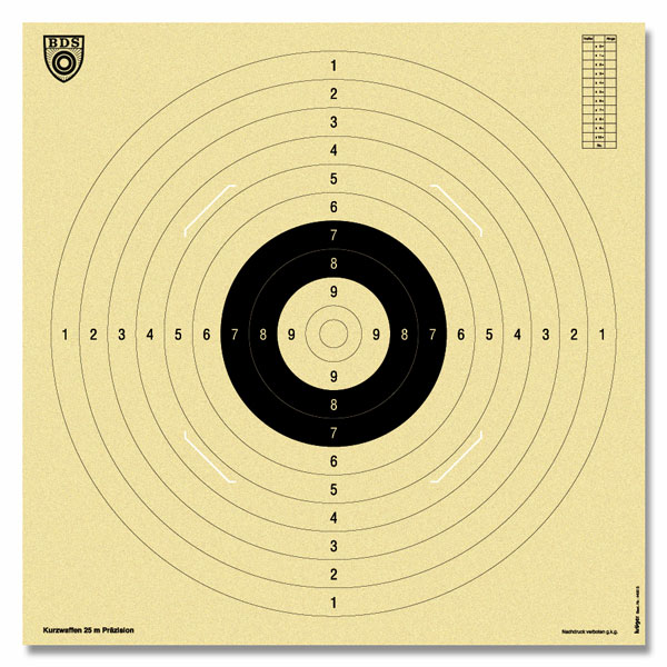 Die wohl bekannteste Disziplin ist das 25 Meter Präzisions-Schießen auf eine Papierscheibe.